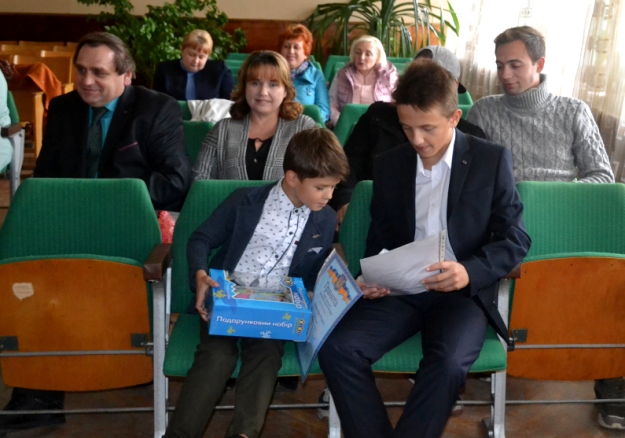 Не залишились поза увагою присутніх і маленькі вихованці прийомної сім’ї Кривенків – Володимир та Михайло, які у цьому році взяли участь в обласному етапі конкурсу «Світ дитячої фантазії», де виготовлений спільно з татом Анатолієм Степановичем ретро-автомобіль зайняв перше місце. Перший заступник міського голови вручив юним майстрам грамоти та цінні подарунки від служби у справах дітей Черкаської обласної державної адміністрації.