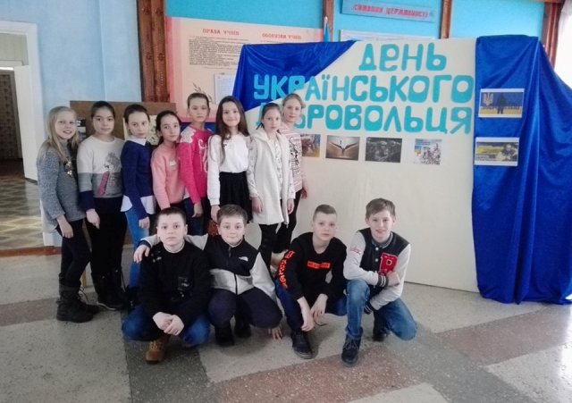 Провели акцію «Напиши листа добровольцеві «Ми дякуємо Вам за мир», відеолінійки «Ваш світлий подвиг незабутній», «Добровольці сучасності», патріотичні флешмоби «Та неоднаково мені…», «Борітеся-поборете!», конкурс малюнків «Намалюй листівку добровольцю». Змістовною і незабутньою була година спілкування з воїном-кіборгом Володимиром Деревянком.