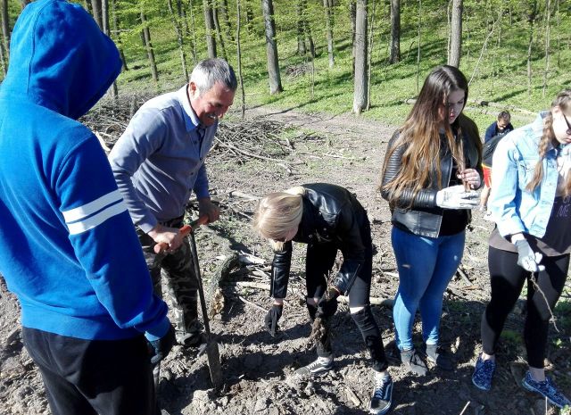Головний лісничий Олексій Семенович Полянський, разом із своїми помічниками, зустрів гостей, провів інструктаж з безпеки життєдіяльності, ознайомив учнів з будовою саджанців дерев та показав техніку висадки їх у відкритий ґрунт.