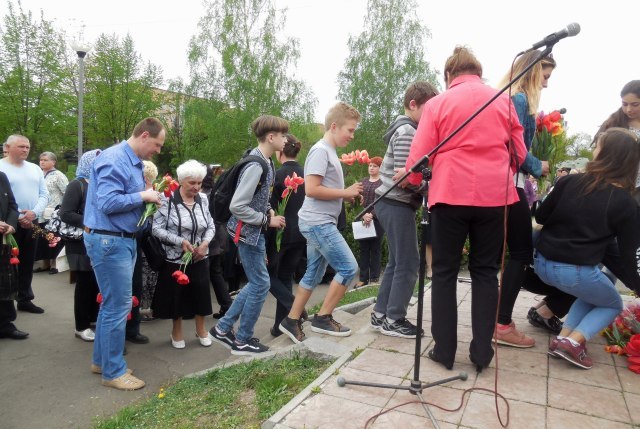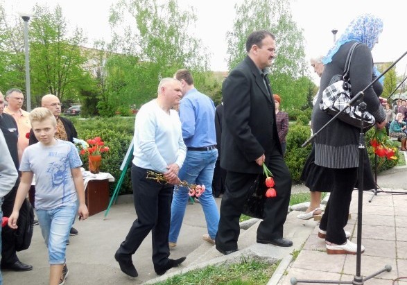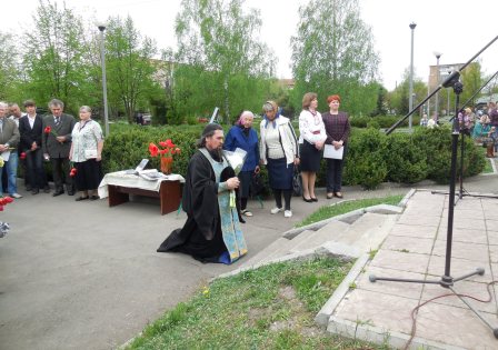 Після того, як ведучі зачитали список 85 чорнобильців міста, які вже пройшли свою останню життєву дорогу, настоятель церкви Казанської Божої Матері о.Олександр відправив поминальну панахиду, а всі присутні поклали квіти до пам’ятного знаку чорнобильцям.
