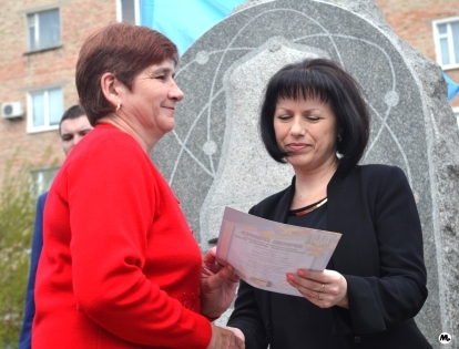 Вона нагородила Почесними грамотами виконавчого комітету Ватутінської міської ради учасників ліквідації аварії на ЧАЕС Сибірко Наталію Іванівну та Щербакова Олександра Вікторовича.
