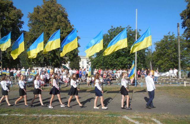 Сьогодні весь український народ відзначає свято нашого синьо – жовтого стягу, і наше місто не виняток. В променях вранішнього сонця міський стадіон «Шахтар» майорів жовто – блакитними кольорами. Саме тут проходила урочиста церемонія підняття Державного Прапора України.