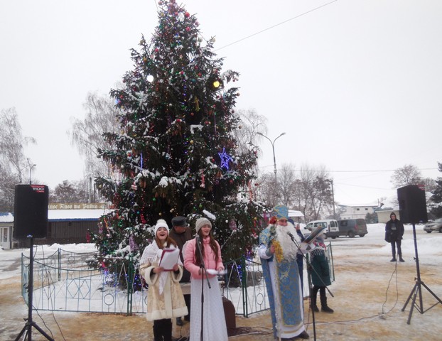 Під гучні оплески учасників свята новорічні ялинка запалала райдугою яскравих вогнів.