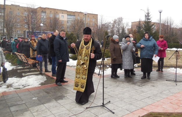 Настоятель церкви Успіння Пресвятої Богородиці отець Мирон провів панахиду, під час якої згадав поіменно всіх 109 загиблих учасників Революції Гідності. На завершення панахиди отець Мирон побажав усім присутнім миру в душах, братерства та порозуміння, і тоді на нашій багатостраждальній Україні також запанує мир.