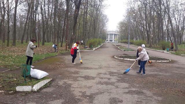 Прийшли вони не для того, що відпочивати, а зробити його більш охайним. Працівники комунального підприємства упорядковували центральну алею парку та територію, що прилягає до неї з обох сторін.