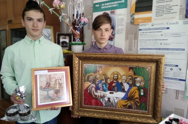Виставка дитячих робіт тривала декілька днів у кабінеті служби у справах дітей. Особливу цікавість не тільки членів журі, учасників а також і відвідувачів викликали різнопланові роботи учнів школи №5 та картини, вишиті Мишуком Віталієм, Мишуком Олексієм та Добровольським Давидом. Як не дивно, але хлопці просто не могли не захопитись вишиванням, коли ми побачили, які шедеври створюють їх опікуни Аліна Валеріївна та Ольга Миколаївна. Спостерігаючи за їх майстерністю, хлопці вирішили теж спробувати і, як бачите, результат вражає!