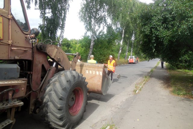 Сьогодні на окремих вулицях Ватутіного містяни спостерігали за злагодженою роботою робітників ПП «Регіон плюс», які проводили підготовчі роботи до асфальтування дорожнього покриття.