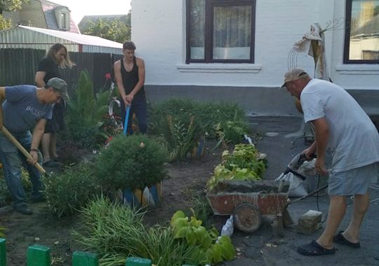 Вчора біля приміщення дитячої школи мистецтв про вулиці Зоряній, увечері вирувала робота: одні копошились на квітнику, щось копаючи, інші виносили викопану землю , другі готували будівельну суміш. Активно керувала процесом викладач дитячої школи мистецтв Ольга Шинкеєва. Працювали дружно.