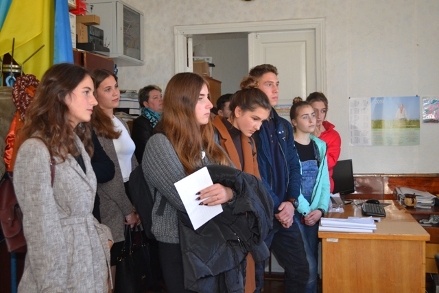 Валентина Кравченко провела для молоді оглядову екскурсію по відділам, які здійснюють свою діяльність у головному адміністративному приміщенні. Вона представила працівників та коротенько розповіла про основні напрямки діяльності кожної служби.