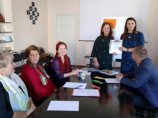 Алла Анатоліївна подякувала всім присутнім за участь в роботі семінару та привітала своїх колег, працівників центру соціальних служб ля сім”ї, дітей та молоді та всіх суб’єктів соціальної роботи з професійним святом - Дня працівників соціальної сфери, а також вручила грамоту Черкаського обласного центру соціальних служб для сім’ї, дітей та молоді Тетяні Ільченко, провідному фахівцю із соціальної роботи.