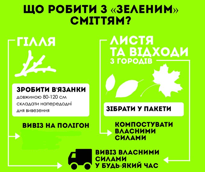 Тому, виконавчий комітет Ватутінської міської ради наполегливо закликає та просить мешканців міста, насамперед мешканців приватних будинковолодінь, не зносити, не розміщувати та не складувати гілки, крони та рештки від дерев до сміттєвих майданчиків на території міста, в разі їх обрізки.