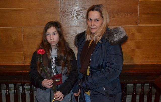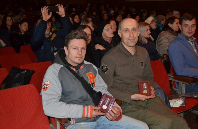 Міський голова вручив відзнаки Президента України «За участь в антитерористичній операції» старшому лейтенанту Олександру Гребіню і сержанту Володимиру Ягоді. А таку ж нагороду за солдата Валентина Михайлюка отримали його дружина та донька.