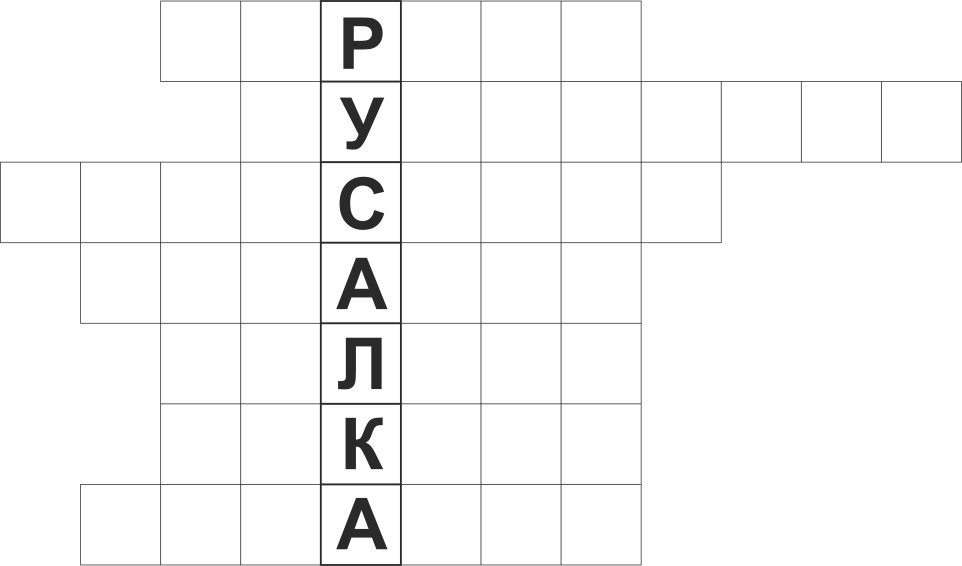 13. Впишіть у пусті клітинки назви віршів В. Симоненка. Якщо ви їх вірно підберете, то в центрі по вертикалі одержите назву твору – „Русалка”.