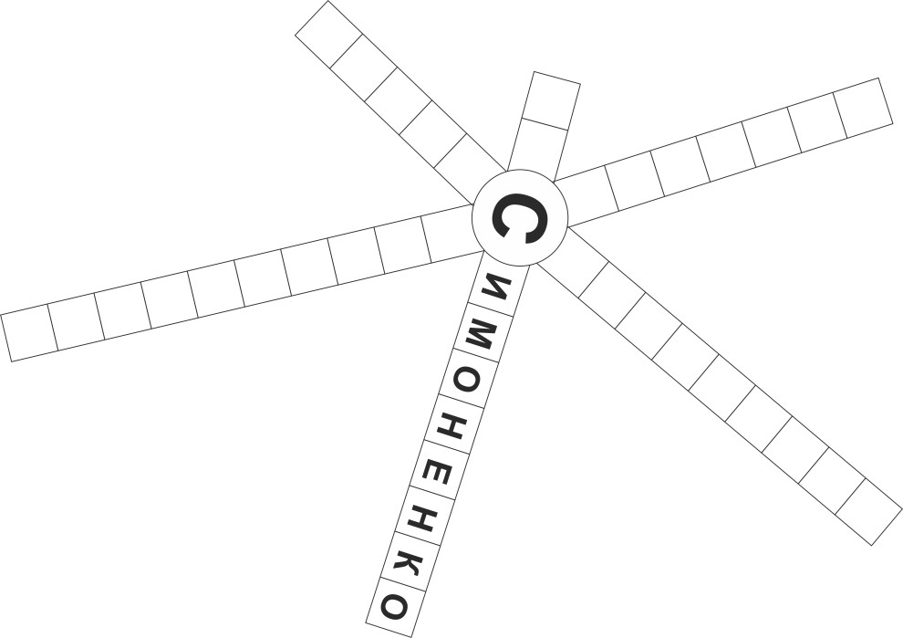 14. Впишіть в клітинки, починаючи з центру, відомі прізвища людей, які тісно були пов’язані з В. Симоненком.