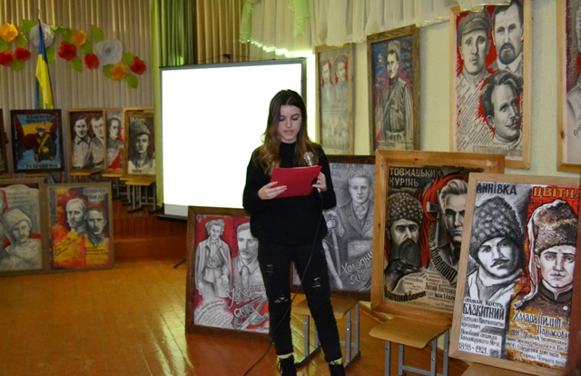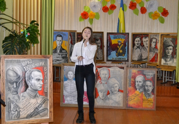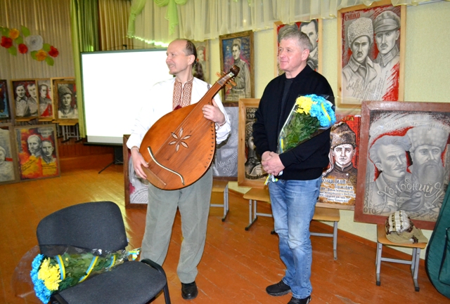 Вони також представили почесних гостей: місцевого художника, різбляра, скульптора - Василя Гелетка, який виставив свої твори, що відображають видатні історичні постаті та події доби Української революції, та кобзаря, заслуженого артиста України Тараса Силенка, виступи якого подарували неймовірні враження та нікого не залишили байдужим.