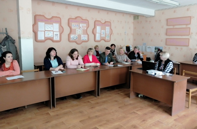 Практичний психолог ліцею Оксана Михайленко не тільки познайомила присутніх з різними розвантажувальними вправами, методами доцільного відпочинку для тих, хто працює за комп’ютером, але й провела ряд вправ з учасниками.