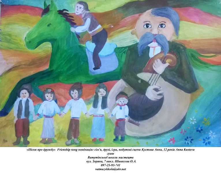 Учасниками заходу були і учні Ватутінської дитячої школи мистецтв. Лауреатами конкурсу стали: Кустова Анна (4 клас), Пономаренко Вероніка (6 клас), Шевченко Анна (6 клас).