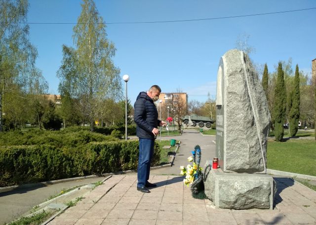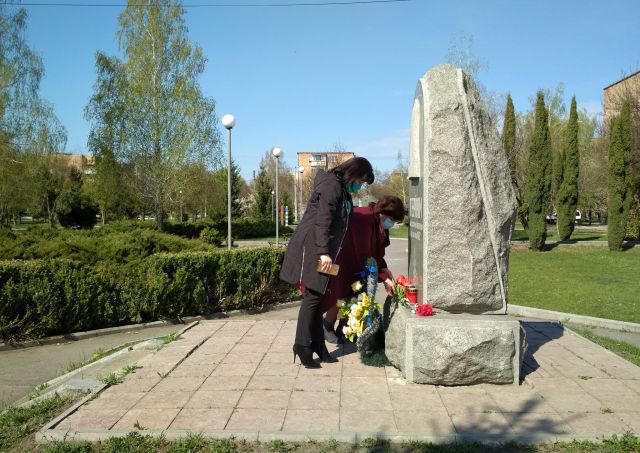 Сьогодні міський голова Олександр Лисюк, його заступник Таїсія Дудник та керуючий справами виконкому Таїсія Стеценко поклали квіти до пам`ятного знаку чорнобильцям у Сквері «Пам`ять».
