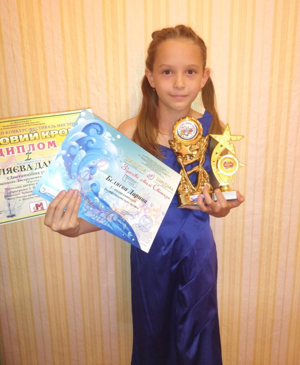 Даринка Беляєва , учениця 3класу фортепіано /викладач Людмила Зубкова/, дистанційно здобула дві вагомі перемоги: у Всеукраїнському конкурс - фестивалі мистецтв «Зірковий крок» - І місце та у Міжнародному фестивалі-конкурсі «Зіркові хвилі Світязя» - ІІ місце. Це перші перемоги юної піаністки в конкурсах такого високого рівня.