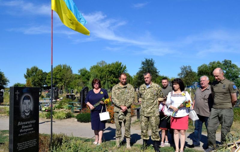 З цієї нагоди сьогодні у Сквері «Пам'ять» відбувся меморіальний захід, в якому взяли участь мама і дочка загиблого під час проведення антитерористичної операції Євгена Іванченка, учасники АТО, представники міської влади: секретар міської ради Сергій Бабюк, заступник міського голови Таїсія Дудник та керуючий справами виконкому Таїсія Стеценко, а також містяни.
