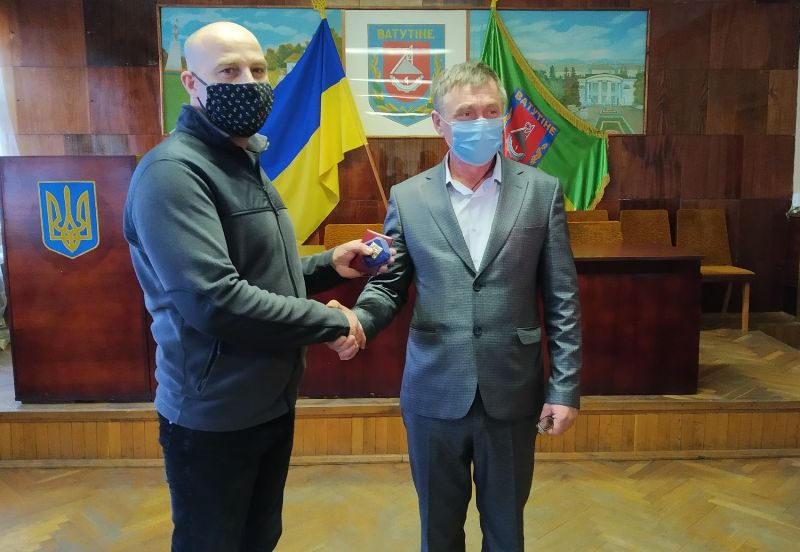Вручаючи нагороду, міський голова подякував Віталію Петровичу від себе особисто та від усієї громади за високе почуття патріотизму, за велику любов до України, за хоробрість, проявлену у боротьбі з ворогом під час захисту рідної землі.