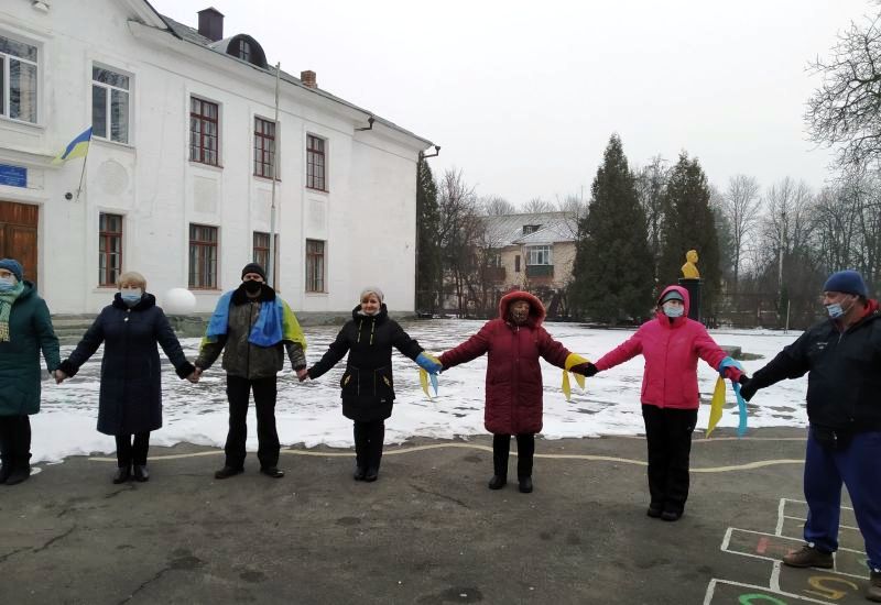 З нагоди Дня Соборності України сьогодні міський голова Олександр Заборовець, секретар міської ради Алла Чорнобай, представники структурних підрозділів виконкому та працівники закладів освіти створили «ланцюг єднання», як символ непорушності українських земель та спільної волі всіх українців жити в єдиній соборній державі.