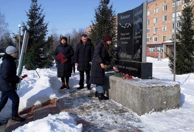 Представники Ватутінської громади зібрались у Сквері «Пам'ять» біля пам’ятника «Пам’яті Героїв Небесної Сотні та Пам’яті Учасників АТО» на жалобний мітинг. Серед них міський голова Олександр Заборовець, перший заступник міського голови Зоя Ляпун, заступник міського голови Юрій Кубявка, представники депутатського корпусу, громадських організацій, підприємств, установ та організацій, юрківчани. Молодь представляли президент Ліги старшокласників, учениця 10 класу закладу загальної освіти №2 Линник Дарина та президент учнівського самоврядування ліцею №2 учень 11 класу Бойко Ярослав/