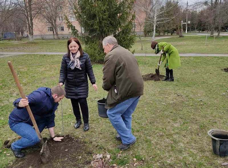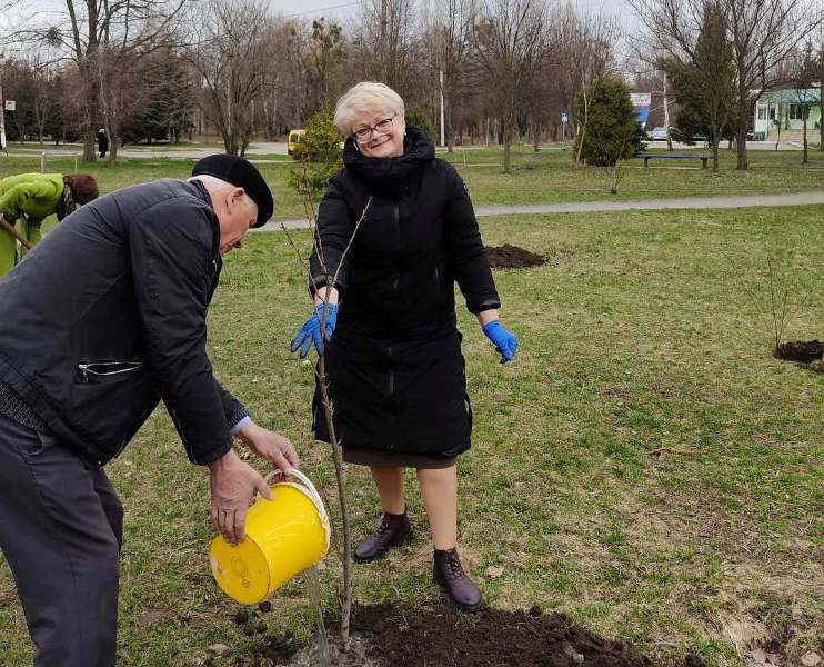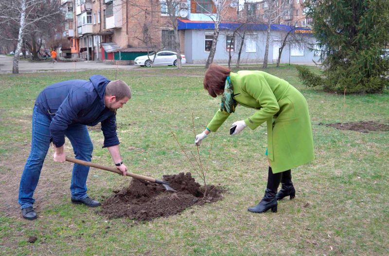 Сьогодні секретар міської ради Алла Чорнобай, перший заступник міського голови Зоя Ляпун, заступник Юрій Кубявка та керуючий справами виконавчого комітету Лариса Гурцак під час обідньої перерви висадили у Сквері "Пам'ять" 11 сакур, придбані власним коштом. Таким чином вони підтримали ініціативу міського голови Олександра Заборовця.