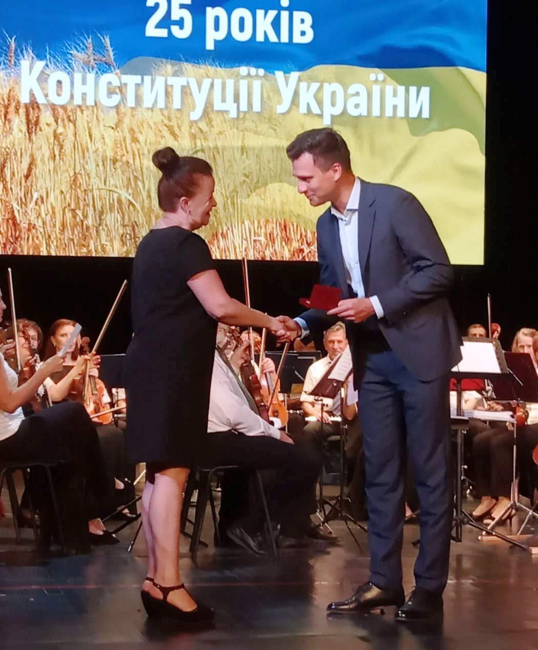 Дуже приємно, коли діяльність жителів громади гідно оцінюється не лише на місцевому рівні, а й на рівні держави. Так сьогодні під час урочистостей з нагоди 25-ї річниці Конституції України голова обласної державної адміністрації Олександр Скічко вручив посвідчення про присвоєння почесного звання Заслужений працівник соціальної сфери Аллі Чорнобай.