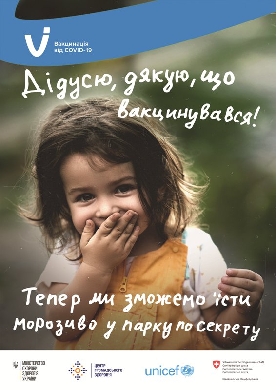 Міністерство охорони здоров’я України за підтримки міжнародних партнерів (USAID та ЮНІСЕФ Україна) реалізує загальнонаціональну інформаційну кампанію з вакцинації від гострої респіраторної хворобиCOVID-19, спричиненої коронавірусом SARS-CoV-2.