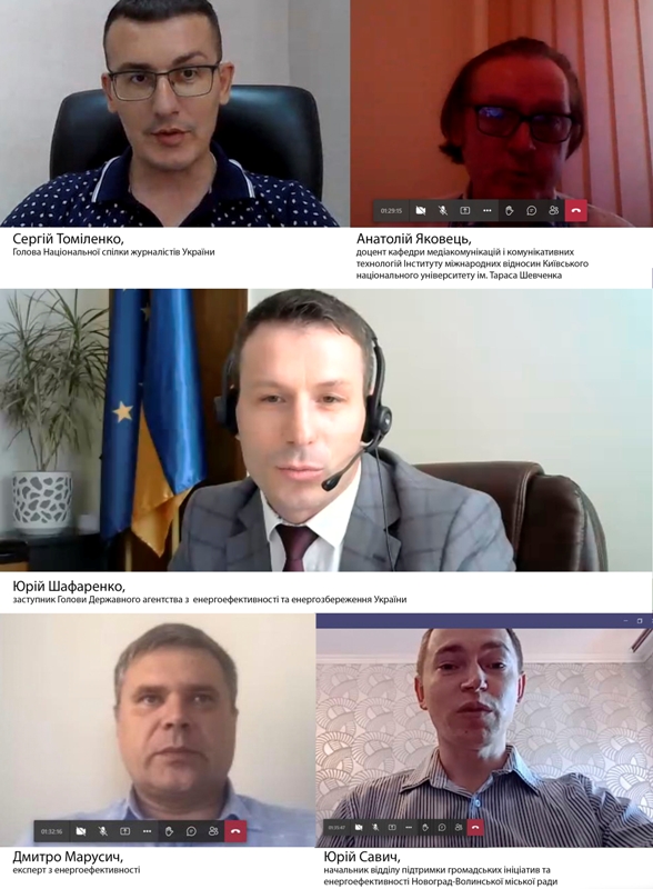 У своєму виступі доцент кафедри медіакомунікацій і комунікативних технологій Інституту міжнародних відносин Київського національного університету ім. Тараса Шевченка Анатолій Яковець наголосв, що Україна є однією з енергозалежних країн Європи, а тому впровадження інформаційно-комунікаційних програм із енергозбереження та енергоефективності є одним із найголовніших завдань для медіа і громадських організацій.