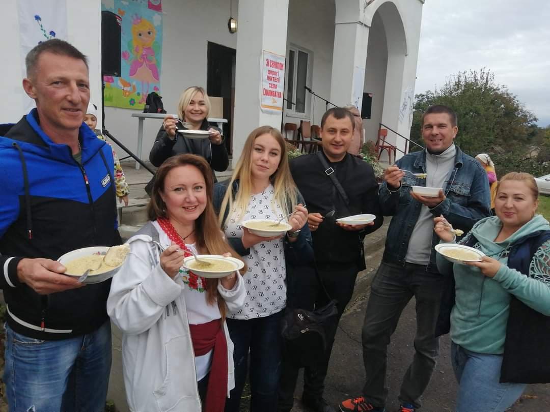 По закінченню свята пригощали всіх присутніх запашним короваєм та частувала смачним козацьким кулішем, який з любов'ю був приготовлений подружжя Парадних Петра Володимировича та Галини Іванівни.