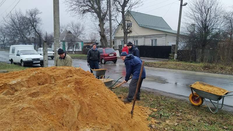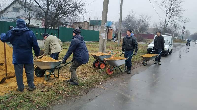 Сьогодні працівники виконавчого комітету Ватутінської міської ради, не дивлячись на дощову погоду, провели піщану підготовку (підстиляючий шар) під майбутній тротуар по вулиці Юрківська від магазину "Райдуга" до межі села Юрківка