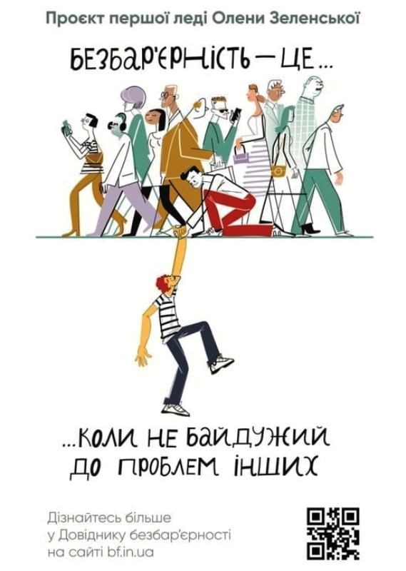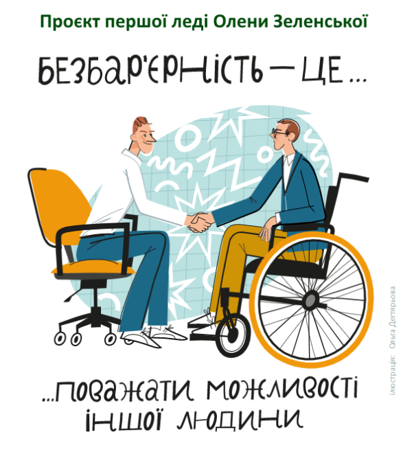 Це місія ініціативи дружини Президента України Олени Зеленської «Без бар'ерів». Для ii досягнення мають відбутися зміни у суспільстві, воно мас стати людиноцентричним. Такі зміни можливі у співпраці влади i суспільства.