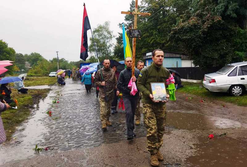 Зустрічали траурний кортеж та проводжали Олександра до осстаннього місця спочинку живим коридором, прихиливши коліна, устеливши шлях живими квітами. Ніхто не стримував сліз.