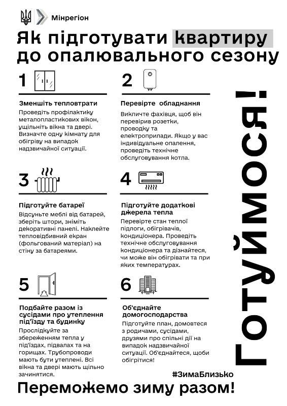Міністерство розвитку громад та територій України розпочало комунікаційну кампанію «Готуймося!», спрямовану на спонукання громадян індивідуально готуватися до опалювального сезону.