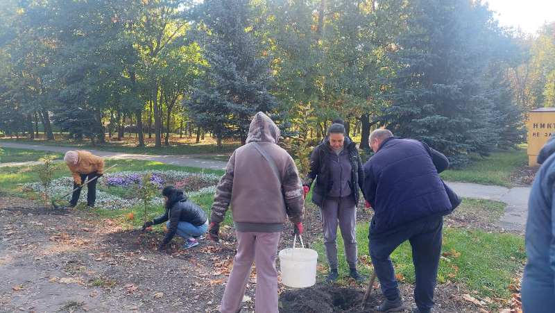За сприяння міського голови Олександра Заборовця, працівниками виконавчого комітету та виробничого управління житлово – комунального господарства проведено акцію з висадження зелених насаджень до Дня захисників та захисниць України.