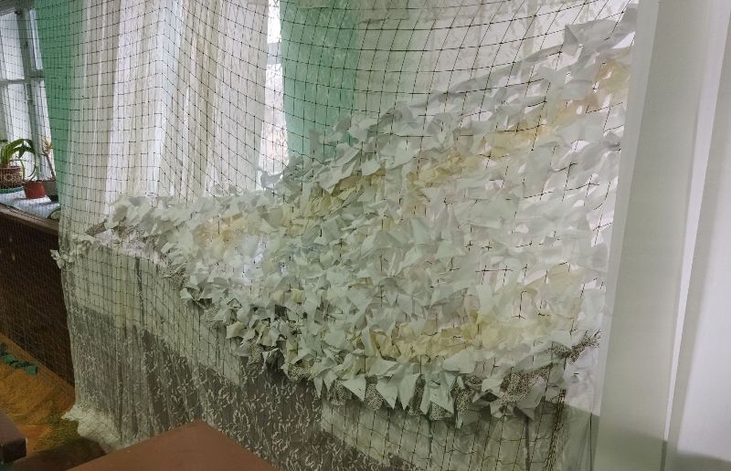 Також інформуємо, що роботи по плетінню маскувальних сіток в сесійній залі активно продовжується. Сьогодні розпочали виготовлення чергової сітки, але цього разу вже зимового формату, адже згодом синоптики прогнозують випадання снігу.