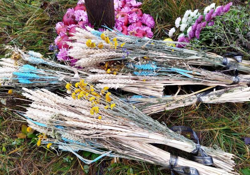 Жертв голодоморів вшанували хвилиною мовчання, помолились за упокій їх душ до пам’ятних знаків поклали композиції з колосків, яблука та квіти.