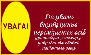 УВАГА! 6 грудня буде продовжено видачу гуманітарної допомоги від Управління Верховного Комісара ООН у справах біженців внутрішньо переміщеним особам, які прибули у нашу громаду у квітні та травні поточного року.