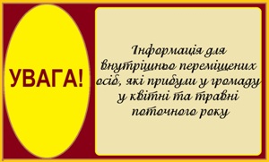 До уваги внутрішньо переміщених осіб, які прибули у нашу громаду у квітні та травні поточного року.