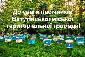 Повідомляємо, що відповідно вимог, затверджених наказом Мінекономіки від 19.02.2021 №338 "Про деякі питання у сфері бджільництва", вам необхідно звернутись у каб. №9 виконавчого комітету Ватутінської міської ради (м.Ватутіне, просп.Дружби, 8, 2-й поверх, відділ соціально-економічного розвитку) для перереєстрації пасік.