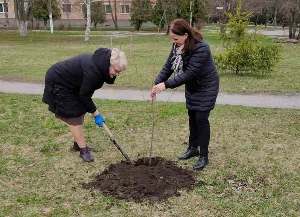 Сьогодні секретар міської ради Алла Чорнобай, перший заступник міського голови Зоя Ляпун, заступник Юрій Кубявка та керуючий справами виконавчого комітету Лариса Гурцак під час обідньої перерви висадили у Сквері "Пам'ять" 11 сакур, придбані власним коштом. Таким чином вони підтримали ініціативу міського голови Олександра Заборовця.
