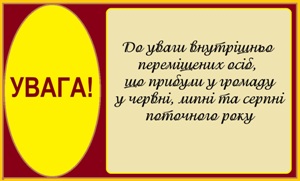 УВАГА! До уваги внутрішньо переміщених осіб!