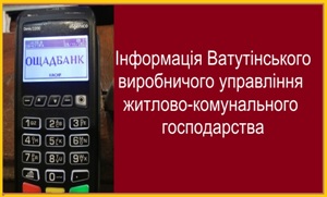 Відтепер ви маєте можливість оплати за надані Ватутінським виробничим управлінням житлово-комунального господарства послуги в абонентському відділі ВВУЖКГ через термінал (безготівкова оплата).