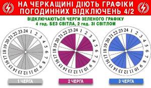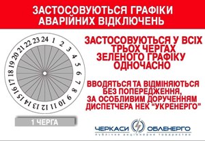 У зв’язку з погіршенням ситуації в об’єднаній енергосистемі України та потребою у збереженні почерговості відключення/включення споживачів, ПАТ «Черкасиобленерго» змушене застосувати 28 листопада до 24:00 графіки погодинних відключень (зелений графік) у такому режимі: