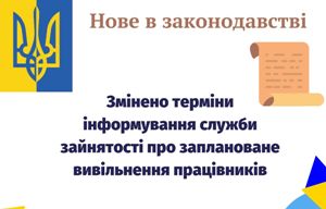 Черкаська обласна служба зайнятості повідомляє про внесення змін до абзацу третього пункту 4 частини третьої статті 50 Закону України «Про зайнятість населення» щодо інформування державної служби зайнятості про заплановане масове вивільнення працівників, зокрема, держслужбовців.