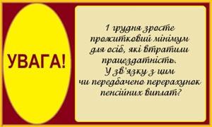 Щороку в Україні у Державний бюджет закладається розмір прожиткового мінімуму для осіб, які втратили працездатність. З 01 грудня 2022 року прожитковий мінімум для осіб, які втратили працездатність, становитиме 2093 грн. І щоразу, як тільки зростає цей показник, проводиться перерахунок складових пенсійних виплат, що базуються на розмірі прожиткового мінімуму, а це: мінімальна та максимальна пенсії за віком, підвищення, надбавки. Отже мінімальний розмір пенсії за віком — 2093 грн, максимальний — 20930 грн.