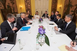 Президент України Володимир Зеленський зустрівся з Європейським комісаром з питань сусідства та розширення Олівером Варгеї, який перебуває з візитом в Україні.
