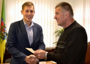 Сьогодні міський голова Олександр Лисюк виконав приємну місію – вручив молодому лікарю-терапевту комунального некомерційного підприємства «Центр первинної медико-санітарної допомоги» Ярославу Аркуші ордер на службове житло.